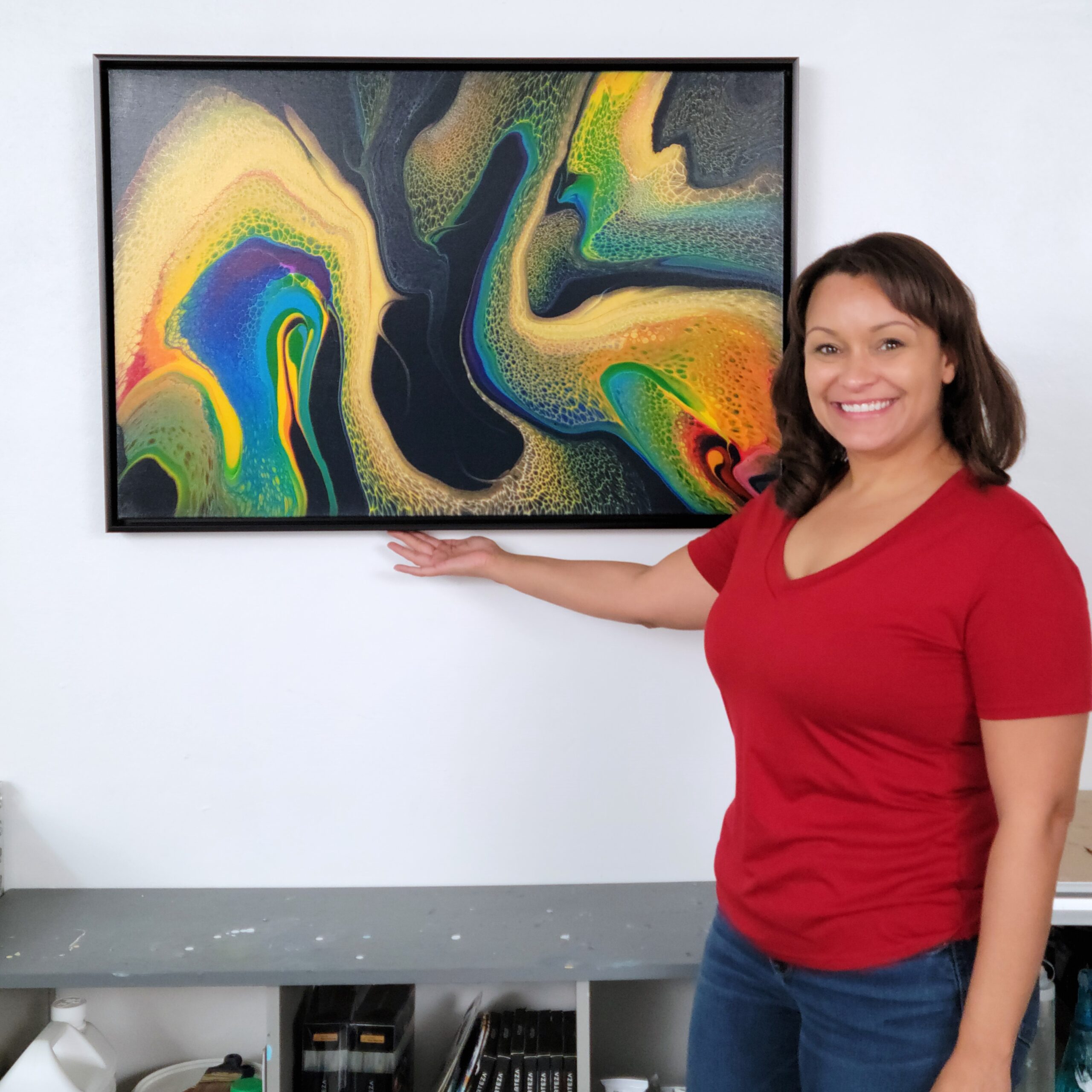 Molly Leach is an internationally known abstract artist located in South Florida. She has lived in coastal cities most of her life and she draws a lot of her inspiration from the ocean. She likes to emphasize color combinations, composition, and movement. This is why the swipe technique has become one of her favorite techniques!